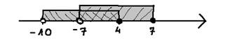 Na osi liczbowej zaznacz podane przedziały. Oba przedziały narysuj na osi liczbowej i zaznacz kolorem ich sumę, wynik zapisz za pomocą jednego przedziału. Sumą przedziałów, stanowi zbiór liczb należące do obu przedziałów. Jeśli koniec przedziału jest domknięty, to zaznaczamy go na osi "zamalowaną kropką". Jeśli koniec przedziału jest otwarty, zaznaczamy go, nie zamalowując wnętrza kropki.