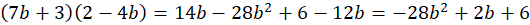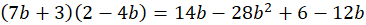 W tym zadaniu przedstaw wyrażenie (7b + 3)(2 - 4b) za pomocą sumy algebraicznej.