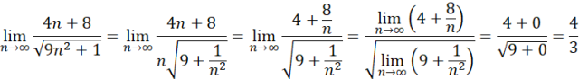 Wyłącz spod pierwiastka najwyższą potęgę w celu skrócenia licznika z mianownikiem, następnie wejdź z granicą pod pierwiastek, aby obliczyć granicę ciągu: