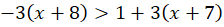 Uprość wyrażenie po prawej i lewej stronie nierówności – wymnóż wszystkie nawiasy, dodaj wszystkie wyrażenia z x oraz wyrazy wolne. Następnie przenieś wszystkie wyrażenia z x na lewą stronę, a wyrazy wolne na prawo. Podziel odpowiednio nierówność stronami. Zapisz rozwiązanie jako przedział.