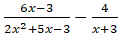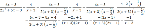 W działaniu, które musisz wykonać ułamki, mają różne mianowniki, a więc musisz sprowadzić je do wspólnego mianownika. Najpierw zapisz mianowniki w postaci iloczynowej, korzystając z delty, dzięki temu zauważysz, że wspólnym mianownikiem może być