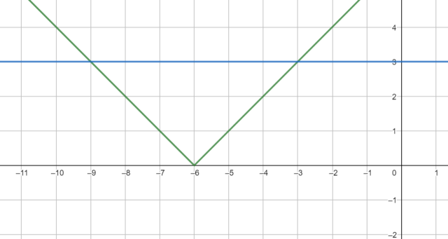 Aby rozwiązać równanie graficznie, naszkicuj wykresy funkcji reprezentujące obie strony równania tzn. y = |-x - 6| oraz y = 3. Rozwiązaniami równania są argumenty, dla których wykresy się przecinają.