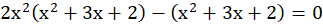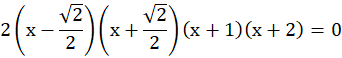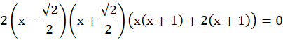 Przekształcasz wyrażenie do postaci umożliwiającej wyłączenie wspólnego czynnika przed nawias. Następnie wyłączasz współczynnik przy zmiennej przed nawias i wykorzystujesz wzór na różnice kwadratów do rozbicia jednego z powstałych nawiasów. Drugi nawias przekształcasz do postaci umożliwiającej wyłączenie wspólnego czynnika przed nawias. Pierwiastki odczytujesz z powstałej postaci iloczynowej.