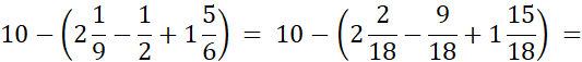 Rozszerz ułamki do mianownika 18 i wykonaj odejmowanie.