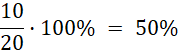 Procenty, czyli ułamek zwykły z wartością procenty w liczniku i z liczbą 100 w mianowniku lub ułamek dziesiętny pomnożony przez 100, przesuniętymi przecinkami o 2 w prawo. Zamalowano 10 kratek z 20.
