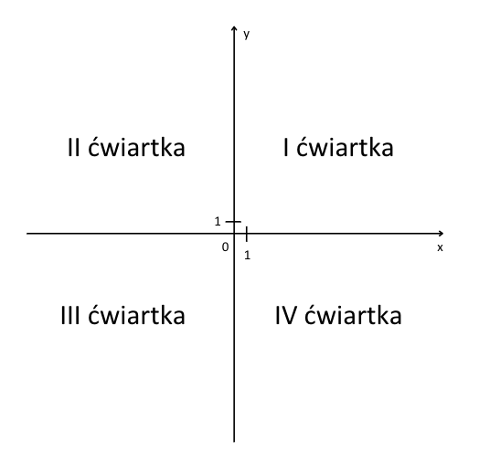 Oś układu współrzędnych dzieli płaszczyznę na 4 ćwiartki: