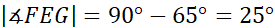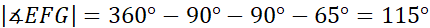 Kąty w niebieskim czworokącie wynoszą 90˚, 90˚, 115˚ i 65˚.