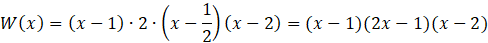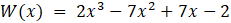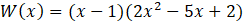 Zauważ, że wielomian W(x) przyjmuje wartość 0 dla x = 1. Oznacza to, że wielomian jest podzielny przez dwumian x – 1. Wykonaj dzielenie za pomocą schematu Hornera, a następnie zapisz wielomian w formie iloczynu. Trójmian x2 – 5x + 2 rozłóż na czynniki przez obliczenie jego wyróżnika oraz znalezienie pierwiastków. Następnie uporządkuj otrzymane wyrażenie.