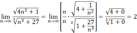 Wyłącz spod pierwiastka w liczniku i mianowniku najwyższą potęgę tak, aby po skróceniu obliczyć granicę ciągu: