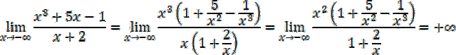 , wyciągając najwyższy czynnik przed nawias w liczniku i mianowniku i zauważ, że granica jest niewłaściwa.