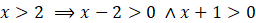 jest większy od 2, to wartość każdego z nawiasów będzie większa od zera.