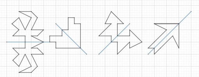Uzupełnij rysunki tak, aby niebieskie proste stały się osiami symetrii.