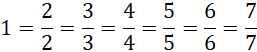 Ułamek jest równy 1, jeśli jego licznik i mianownik są równe.