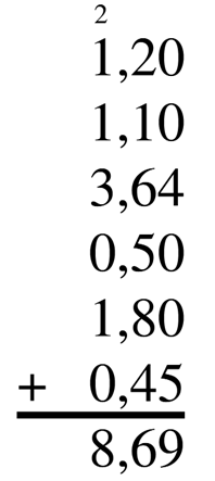1,2 + 1,1 + 3,64 + 0,5 + 1,8 + 0,45 = 8,69 km