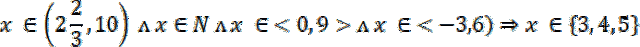 x ⋲ N∧ 0 ≤ x ≤ 9 ∧ –3 ≤ 6–x ≤ 6