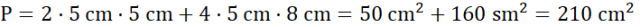 Na początek oblicz pole powierzchni pudełka przed jego zmniejszeniem. Pole mniejszego pudełka otrzymasz, odejmując od wyliczonego wcześniej pola 60 centymetrów kwadratowych. Zapisz wzór na pole powierzchni nowego pudełka, w miejsce nowej wysokości wpisując pomocniczą niewiadomą np. literę c. Odejmij od obu stron równości 50 cm2, a wynik podziel przez 20 cm – otrzymasz długość brakującej krawędzi. Na koniec odejmij od starej krawędzi długość nowej – wynik to wartość, o jaką zmniejszono wysokość pudełka.