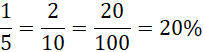 Pamiętaj, cała powierzchnia koła to 100%, a jedna piąta to piąta część z całości, czyli 5 razy mniej niż 100%.