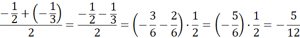 Pamiętaj, średnia arytmetyczna to suma danych liczb podzielona przez ich ilość. Sprowadź ułamki do wspólnego mianownika i zapisz dodawanie liczby ujemnej jako odejmowanie liczby do niej przeciwnej. Odejmij od siebie ułamki. Nastęnie podziel wynik przez dwa, czyli pomnóż go przez