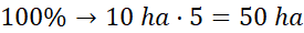 Na początek oblicz, ile procent powierzchni stanowi las: od całości, czyli 100% odejmij część, jaką jest ziemia orna, czyli 80%. Las stanowi 20% całego gospodarstwa, wiec pomnóż jego powierzchnię 5, by otrzymać 100% powierzchni tego obszaru.