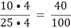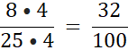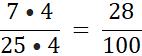 Liczba w mianowniku ma dwa zera, więc będą dwie cyfry po przecinku: 0,28;0,40;0,32.