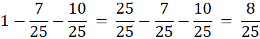 Zapisz w postaci ułamka dziesiętnego, jaką część wszystkich dni stanowiły dni słoneczne, jaki – pochmurne, a jaki – deszczowe. Wszystkich dni było 25, a w nich było 7 dni pochmurnych, 10 słonecznych, a w pozostałe dni padało.