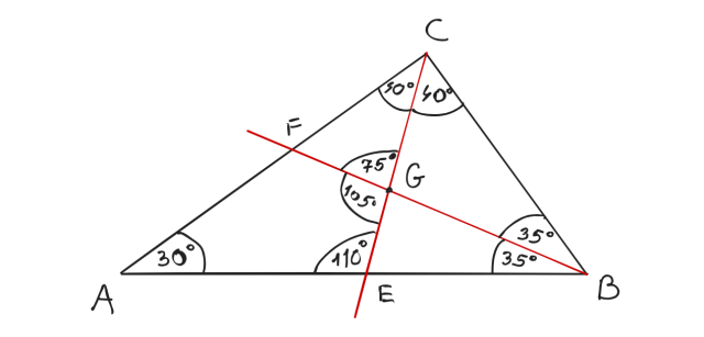kąt GEB: 180 - 75° - 70° = 35°
