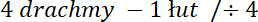 Wyraź najpierw łuty za pomocą skrupułów, następnie drachmy za pomocą łutów. Na koniec podziel tak, aby przy drachmie była jedność, a przy łucie ułamek z wynikiem.