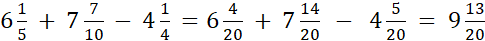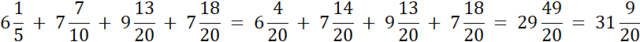 Liczymy po kolei wszystkie powierzchnie działek, a na koniec dodajemy je. Sprowadzamy do wspólnego mianownika, dodajemy lub odejmujemy od siebie osobno całości i osobno liczniki części ułamkowych, jeśli odejmowana część ułamkowa jest większa niż ta, od której odejmujemy to w odjemnej zamieniamy jedną z całości na ułamek niewłaściwy. Na koniec zamieniamy ułamek niewłaściwy na liczbę mieszaną. 1 ha = 100 a, więc wynik w ha mnożymy razy sto, osobno mnożymy całości i część ułamkową, sprowadzamy od najprostszej postaci.