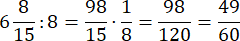 Aby wykonać to dzielenie, należy liczbę mieszaną zamienić na ułamek niewłaściwy i pomnożyć przez odwrotność liczby.