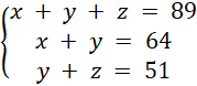 Zauważ, że masz podaną część równania ze wszystkimi autobusami, czyli sumę autobusów x i y. Pozwala to policzyć ilość pasażerów w trzecim autobusie, co korzystając z sumy y i z pozwala obliczyć pasażerów w drugim autobusie. Mając obie liczby, można obliczyć pasażerów w pierwszym autobusie.