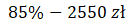 Zauważ, że 85% ceny stanowi 2550 zł. Skorzystaj z proporcji i na tej podstawie oblicz jego początkową cenę.
