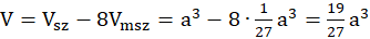 W tym zadaniu musisz obliczyć objętość i pola powierzchni wielościanu otrzymany tak, że od sześcianu o krawędzi a odcięto w każdym wierzchołku mniejszy sześcian.