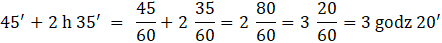 Napisz, jaki czas trwały zajęcia w ciągu jednego dnia, jeśli były sportowe w godzinach od 10.15 do 11.00 i od 16.10 do 18. 45.