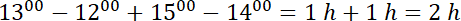 Odcinki, w których wykres jest zaznaczony linią poziomą oznaczają, że samochód nie przebywał żadnej drogi, a więc stał w miejscu. Na wykresie takie odcinki są dwa: od 12:00 do 13:00 oraz od 14:00 do 15:00. Korzystając z tego, oblicz łączny czas postojów.