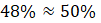 Jeśli dziesiątka jest równa lub większa od 5, zwiększamy ją o 1. Jeśli liczba jest mniejsza od 5, zostawiamy ją bez zmian. 48% jest równe około mniej niż połowę