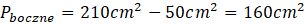Oblicz pole jednej ściany bocznej prostopadłościanu o podstawie kwadratu o boku 5 cm, jeśli pole powierzchni całkowitej wynosi 210 cm2.