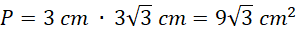 Boki a i b obliczysz z własności wynikających z twierdzenia Pitagorasa w trójkącie, który ma miary katów równe 30˚, 60˚ i 90˚. Jeśli bok naprzeciwko kąta 30˚ jest równy a, to ten leżący naprzeciw 60˚ jest równy , a bok będący przeciwprostokątną jest równy 2a. Więc a = 3 cm, b = cm.
