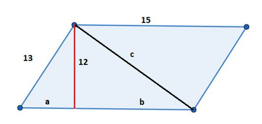 Podziel równoległobok tak, aby uzyskać kilka trójkątów prostokątnych. Skorzystaj z tego, że równoległobok ma dwie pary takich samych boków. Potem korzystaj z twierdzenia Pitagorasa. Twierdzenie Pitagorasa mówi o tym, że suma kwadratów przyprostokątnych jest równa kwadratowi przeciwprostokątnej.