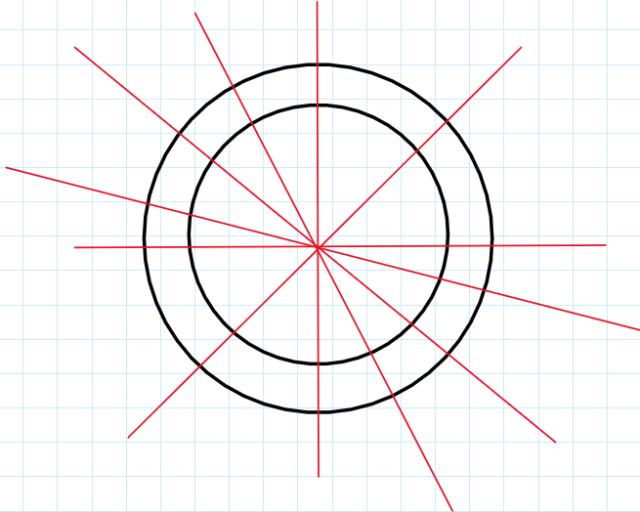 Figura po lewej ma nieskończenie wiele osi symetrii przechodzących przez środek okręgów.