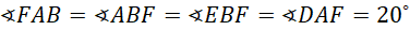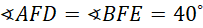 Kąt DFE jest równy 140˚, jako wierzchołkowy z kątem AFB.
