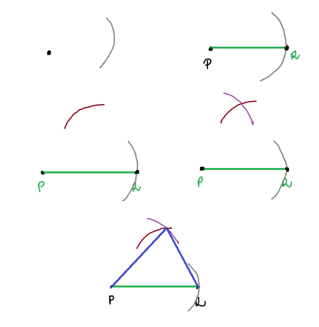 7. Punkt przecięcia łuków połącz z końcami podstawy trójkąta.