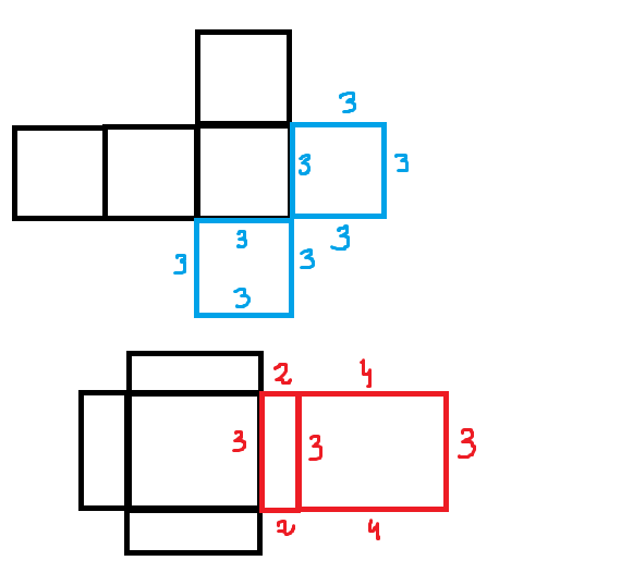 Liczby obok krawędzi oznaczają liczbę kratek,