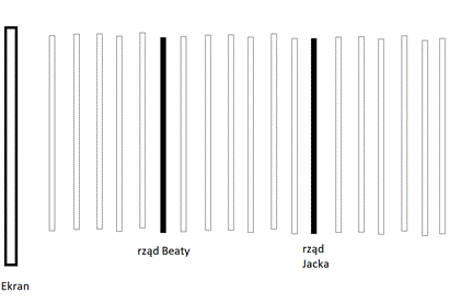 Na początku musisz zapisać liczbę rzędów przed Jackiem. Następnie musisz policzyć, ile rzędów znajduje się za nim (musisz do ilości rzędów znajdujących się za Beatą dodać liczbę rzędów między nimi i rząd Jacka), a potem zsumować liczbę rzędów przed i za Jackiem.