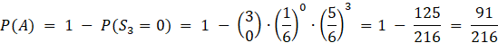 A – zdarzenie: co najmniej raz wypadnie ścianka z sześcioma oczkami przy 3 rzutach
