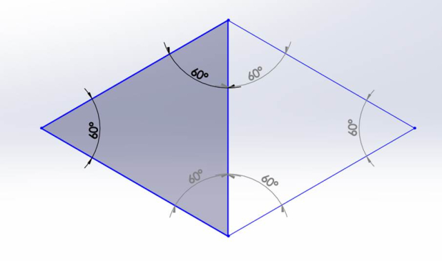 Pamiętaj, że w trójkącie równobocznym wszystkie kąty mają równo 60°.