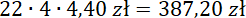 Oblicz, ile kosztują panią Ewelinę 22 dni dojazdów i powrotów z pracy, jeśli każdego dnia kasuje 4 bilety. Cenę biletu jednorazowego odczytaj z tabeli.