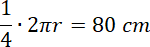 Z materiału o szerokości 1,4 m i długości 140 cm krawcowa wycięła spódnicę – materiał przed wycięciem ma kształt kwadratu o boku 140 cm. Wykrój przedstawiony jest na rysunku. Najpierw wycięto koło o większym promieniu, następnie o mniejszym.