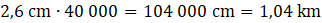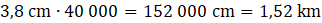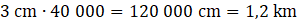 Jeśli długość rzeczywista jest w skali 1 : 40 000, to znaczy, że wymiary zostały zmniejszone 40 000 razy.