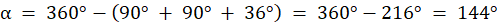 W tym zadaniu oznacz kąt środkowy jako α, następnie pamiętając o tym, że suma miar w czworokącie jest równa 360° oblicz miarę tego kąta.