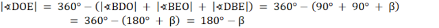 Pamiętaj, że suma miar kątów wewnętrznych w każdym czworokącie wynosi 360°. Wyznacz miarę kąta DOF oraz DOE. Skorzystaj z twierdzenia o kątach wpisanym i środkowym opartych na tym samym łuku. Dla kątów opartych na tym samym łuku miara kąta środkowego jest zawsze 2 razy większa od miary kąta wpisanego. Tę zależność nazywamy twierdzeniem o kątach wpisanym i środkowym opartych na tym samym łuku.